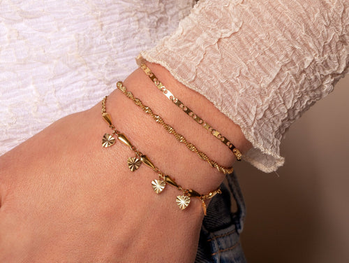 Wij kiezen bewust voor roestvrij staal in onze sieraden. Waarom? Het gaat gewoon heel lang mee! Je hoeft niet bang te zijn voor krassen, het kan tegen water en je kan het dragen als je een gevoelige huid hebt omdat er geen nikkel in zit. Het mooie is dat roestvrij staal z'n glans houdt, ook als je het elke dag draagt. Of je nou van armbanden, kettingen, ringen of oorbellen houdt, ze blijven er goed uitzien.