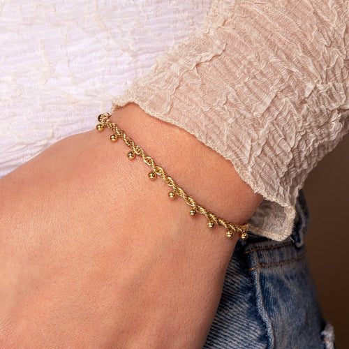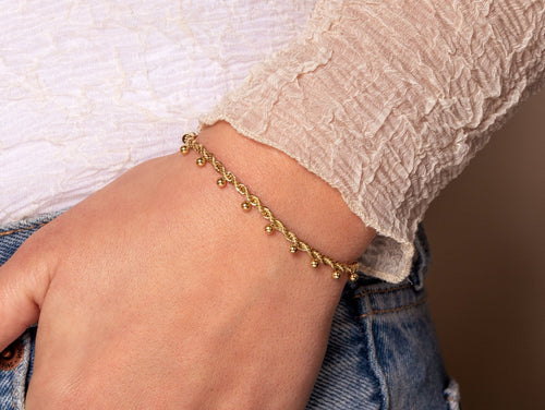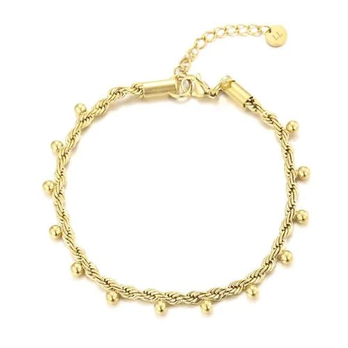 Deze gedraaide schakel armband met balletjes is 16 cm lang en kan nog eens met 4 cm verlengd worden. Gemaakt van hoogwaardig stainless steel. Dankzij het verlengstukje is de armband verstelbaar en geschikt voor verschillende polsmaten.