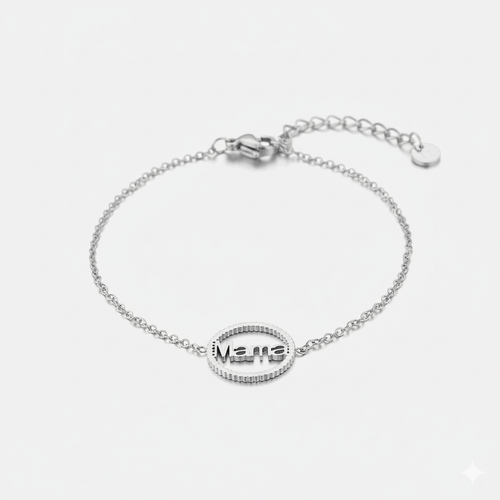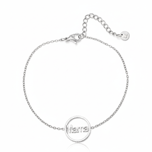 Minimalistische armband met mama bedel. 16 cm lang en kan nog eens met 4 cm verlengd worden. Gemaakt van hoogwaardig stainless steel. Mama bedeltje is ongeveer 8mm. Dankzij het verlengstukje is de armband verstelbaar en geschikt voor verschillende polsmaten. Perfecte Moederdag cadeau.