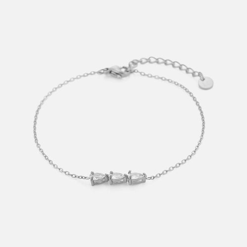 Armband met zirkonia druppels zilver. 16 cm lang en kan nog eens met 4 cm verlengd worden. Gemaakt van hoogwaardig stainless steel. Dankzij het verlengstukje is de armband verstelbaar en geschikt voor verschillende polsmaten.