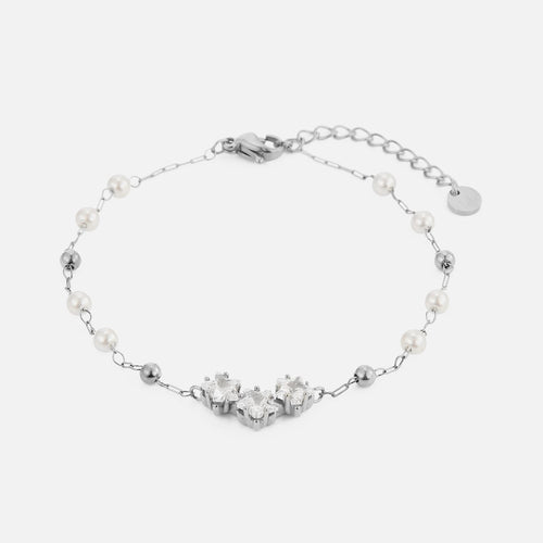 Armband parel zirkonia zilver is 16 cm lang en kan nog eens met 4 cm verlengd worden. Gemaakt van hoogwaardig stainless steel. Dankzij het verlengstukje is de armband verstelbaar en geschikt voor verschillende polsmaten.