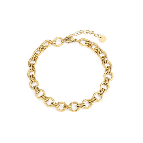Zilveren armband met ronde schakels goud. 16 cm lang en kan nog eens met 4 cm verlengd worden. Gemaakt van hoogwaardig stainless steel. Dankzij het verlengstukje is de armband verstelbaar en geschikt voor verschillende polsmaten.
