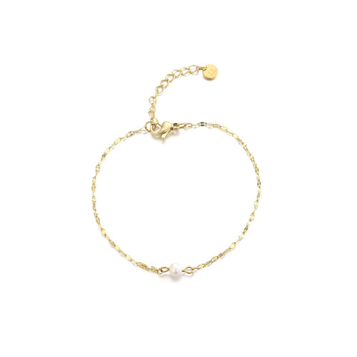 Armband fijne schakel met pareltje. 16 cm lang en kan nog eens met 4 cm verlengd worden. Gemaakt van hoogwaardig stainless steel. Dankzij het verlengstukje is de armband verstelbaar en geschikt voor verschillende polsmaten. (Let op! parel kan verkleuren door aanraking water)