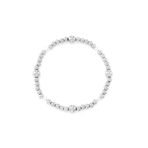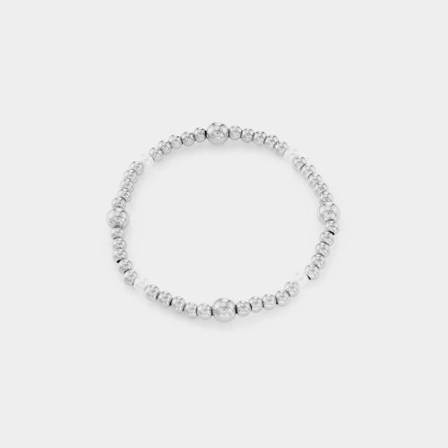 Stretch armband met balletjes en parel. 16cm tot 20cm lang te stretchen. Gemaakt van hoogwaardig stainless steel. Door het elastiek is de armband verstelbaar en geschikt voor verschillende polsmaten. Zeer goed te combineren met andere stretch armbanden. (bekijk ze hier) (Let op! de parel kan verkleuren door aanraking water)