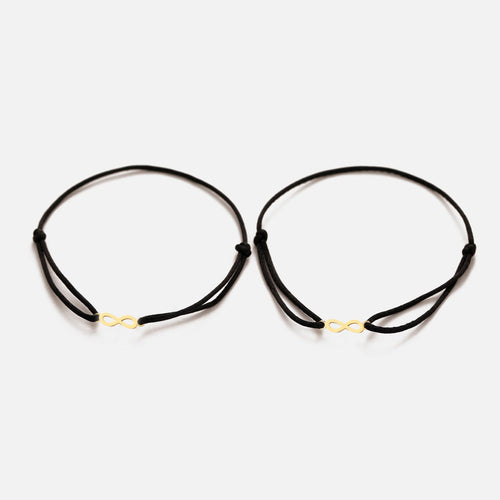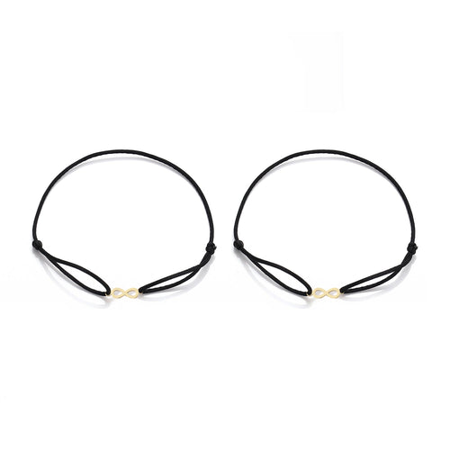 Set infinitief armbanden. 16 cm te verstellen tot 20 cm. Gemaakt van hoogwaardig stainless steel en touw. Het infinity bedeltje is 5mm. De armband geschikt voor verschillende polsmaten. Deze set bevat 2 armbandjes om met elkaar verbonden te zijn.