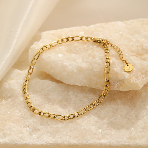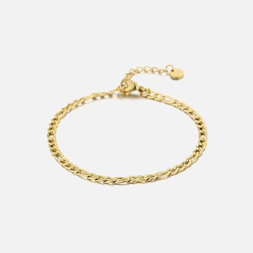 Gouden figaro schakel armband. 16 cm lang en kan nog eens met 4 cm verlengd worden. Dikte van de armband is 4mm. Gemaakt van hoogwaardig stainless steel. Dankzij het verlengstukje is de armband verstelbaar en geschikt voor verschillende polsmaten. goed te combineren met andere gouden sieraden.