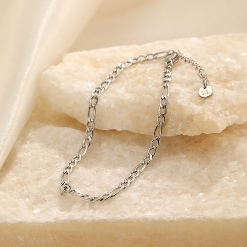 Zilveren figaro schakel armband. 16 cm lang en kan nog eens met 4 cm verlengd worden. Dikte van de armband is 3mm. Gemaakt van hoogwaardig stainless steel. Dankzij het verlengstukje is de armband verstelbaar en geschikt voor verschillende polsmaten. Goed te combineren met andere zilveren sieraden.