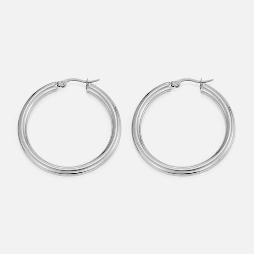 Zilveren hoop oorbel. Diameter 4cm. Dikte 4mm Gemaakt van hoogwaardig stainless steel. Basic musthave in elke sieraden collectie.