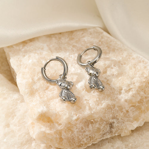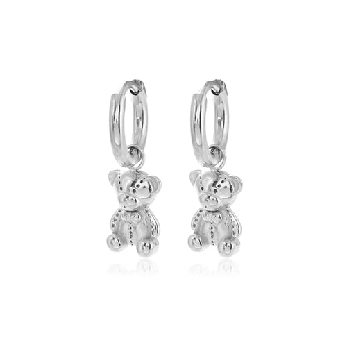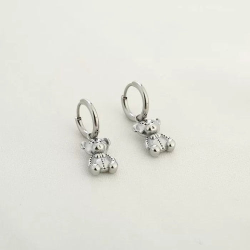 Zilveren oorring met beertjes bedeltje. Oorbellen zijn 2.2cm lang. Gemaakt van hoogwaardig stainless steel. Goed te combineren met andere zilveren sieraden.