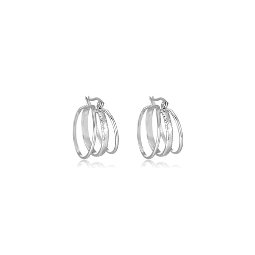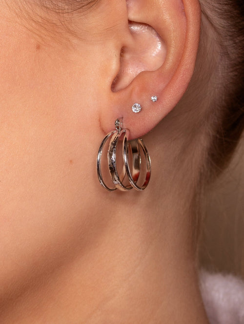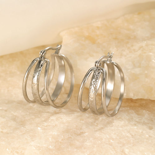 Zilveren drie laags hoop oorbel. Diameter 2.4cm. Gemaakt van hoogwaardig stainless steel.