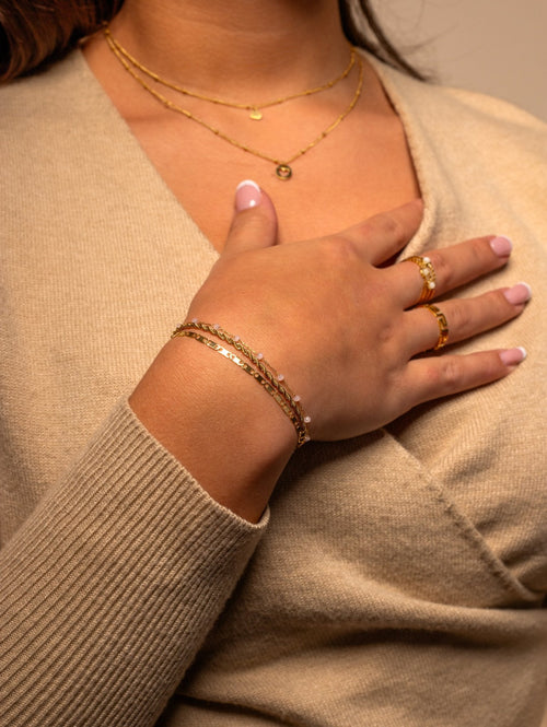 Wij vinden dat iedereen mooie sieraden moet kunnen dragen, ongeacht je maat. Daarom zijn veel van onze stukken verstelbaar. Te strak? Maak het losser. Te los? Trek het wat aan. Zo simpel is het. Of het nou een armband, ring, enkelbandje of ketting is, jij bepaalt hoe het zit. Want alleen als het lekker zit, voel je je er ook goed bij.