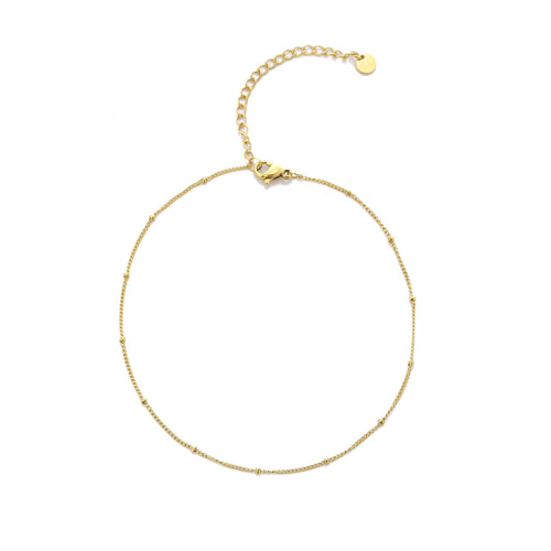 Goud dunne enkelband met balletjes. 20 cm lang en kan nog eens met 5 cm verlengd worden. Gemaakt van hoogwaardig stainless steel. Dankzij het verlengstukje is de enkelband verstelbaar en geschikt voor verschillende enkelmaten.