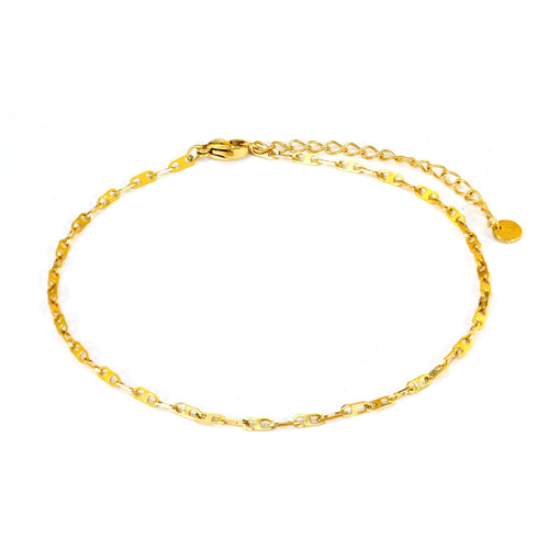 20 cm lang en kan nog eens met 5 cm verlengd worden. Gemaakt van hoogwaardig stainless steel. Dankzij het verlengstukje is de enkelband verstelbaar en geschikt voor verschillende enkelmaten.