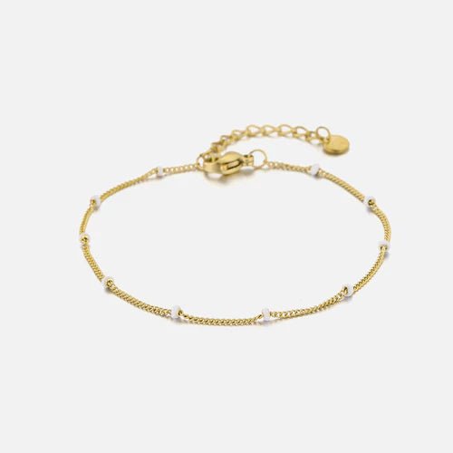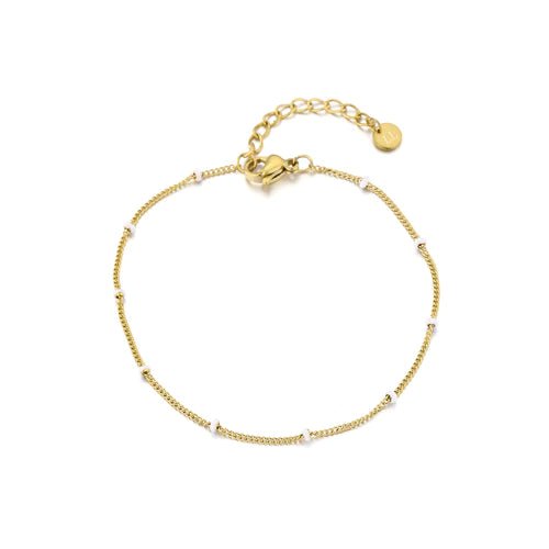 Gouden fijne schakel armband. 16 cm lang en kan nog eens met 4 cm verlengd worden. Gemaakt van hoogwaardig stainless steel. Dankzij het verlengstukje is de armband verstelbaar en geschikt voor verschillende polsmaten.