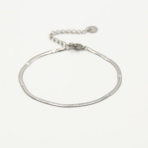 Zilveren dunne armband. 16 cm lang en kan nog eens met 4 cm verlengd worden. Dikte van de armband is 2mm. Gemaakt van hoogwaardig stainless steel. Dankzij het verlengstukje is de armband verstelbaar en geschikt voor verschillende polsmaten. goed te combineren met andere zilverkleurige sieraden.