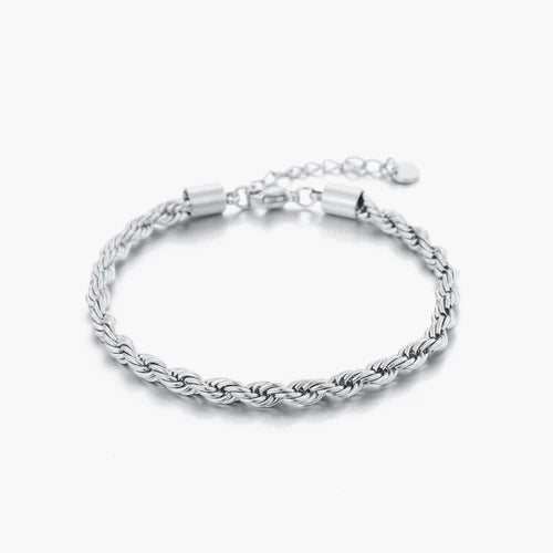 Zilver gedraaid schakel armband. 16 cm lang en kan nog eens met 4 cm verlengd worden. Gemaakt van hoogwaardig stainless steel. Dankzij het verlengstukje is de armband verstelbaar en geschikt voor verschillende polsmaten.