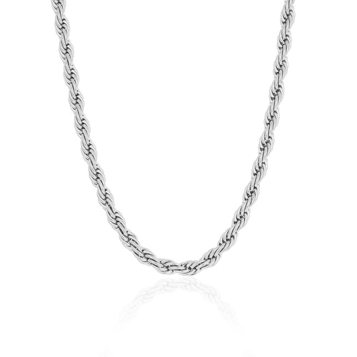 Zilveren gedraaide ketting. Lengte 40cm en nog eens te verlengen met 5cm. Dikte 6mm Gemaakt van hoogwaardig stainless steel. Tijdloze uniseks ketting.