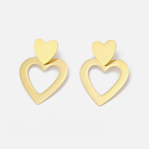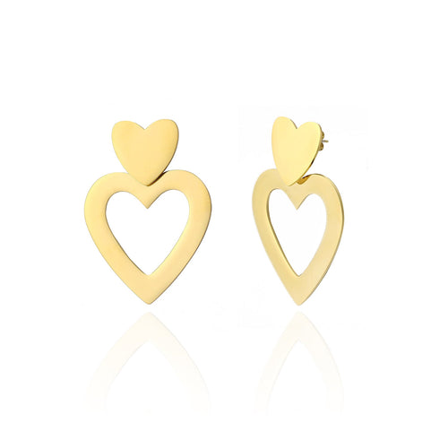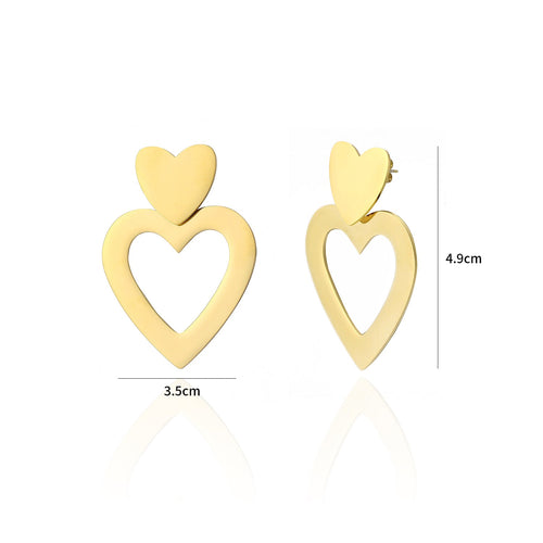 Goud hart hangende oorbellen. 4.9 cm lang. Gemaakt van hoogwaardig stainless steel.