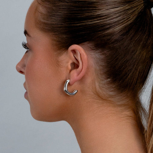 Zilveren hoekvorm Hoops. Oorbel is 2.3cm breed. Gemaakt van hoogwaardig stainless steel.