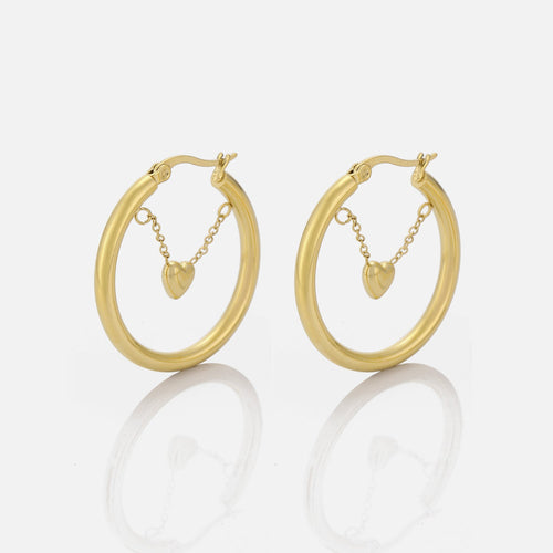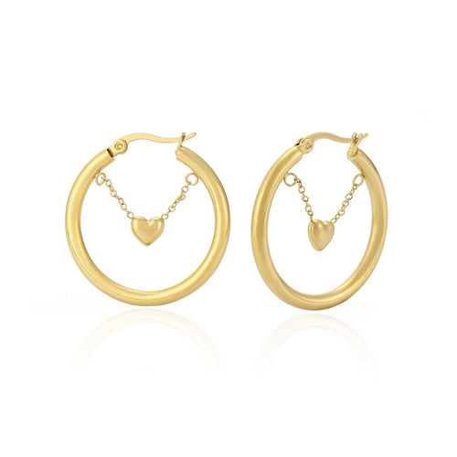 Gouden Hoops met hangende hartje. De oorbel is 3cm breed. Gemaakt van hoogwaardig stainless steel.