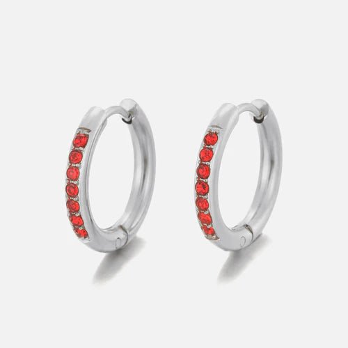 Zilveren Hoops met rode steentjes. De oorbel is 1.6cm breed. Gemaakt van hoogwaardig stainless steel.