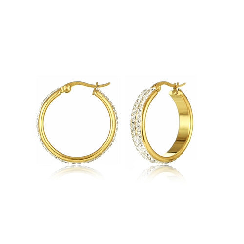 Gouden statement Hoops met steentje. De oorbel is 2.2cm breed. Gemaakt van hoogwaardig stainless steel.