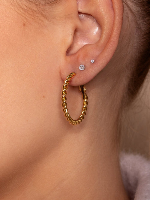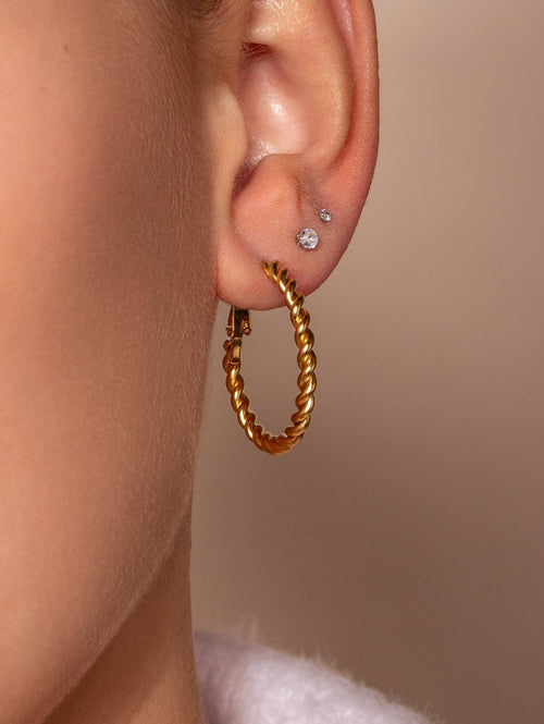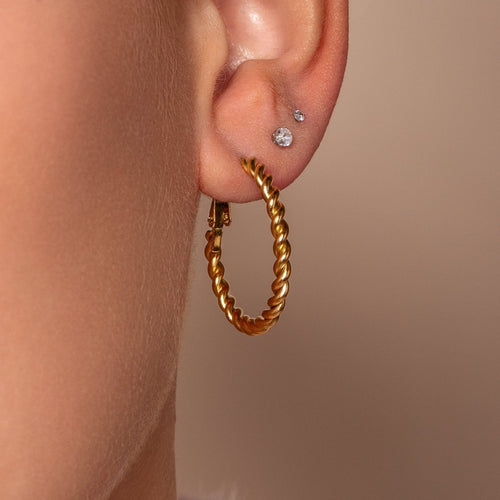 Gouden gedraaide Hoops. De oorbel is 3.5cm breed. Gemaakt van hoogwaardig stainless steel.