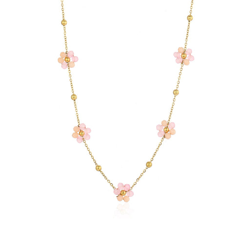 Gouden ketting met fancy bloem. Lengte 40cm en nog eens te verlengen met 5cm. Gemaakt van hoogwaardig stainless steel.