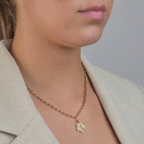 Gouden ketting met bloem. Lengte 40cm en nog eens te verlengen met 5cm. Gemaakt van hoogwaardig stainless steel.