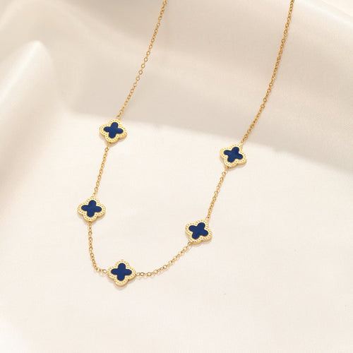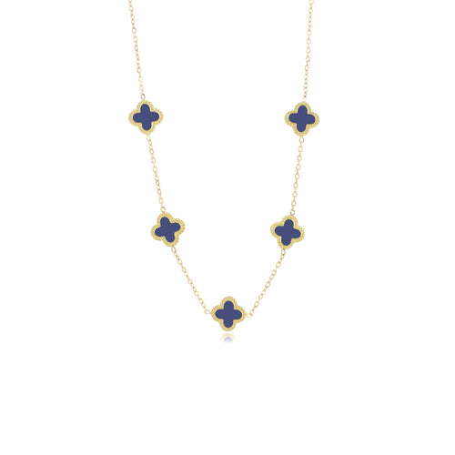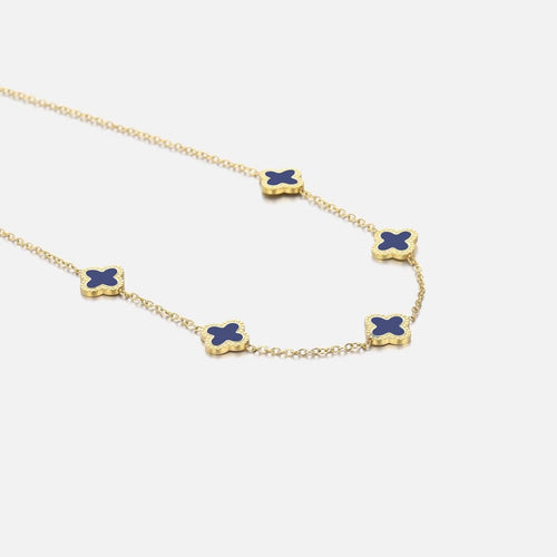 Gouden ketting met blauwe klavertjesvier. Lengte 40cm en nog eens te verlengen met 5cm. Gemaakt van hoogwaardig stainless steel.