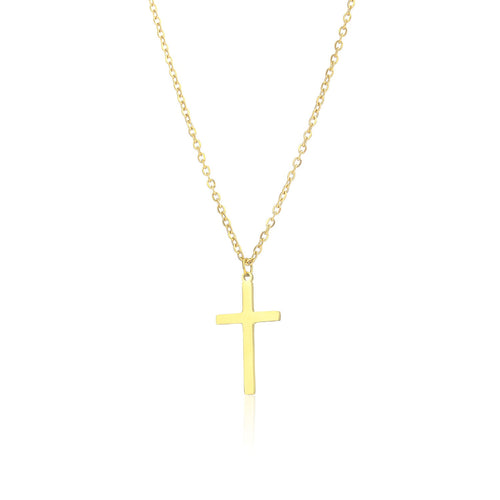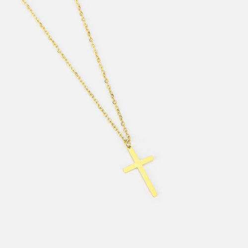 Gouden ketting met kruisje. Lengte 40cm en nog eens te verlengen met 5cm. Het kruisje is 10mm breed en 23mm lang. Gemaakt van hoogwaardig stainless steel.