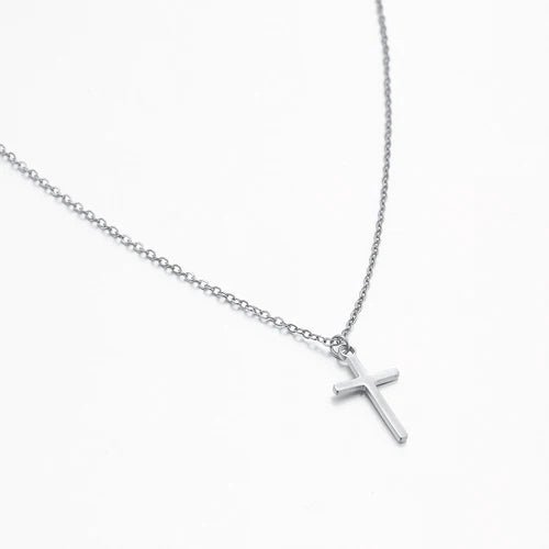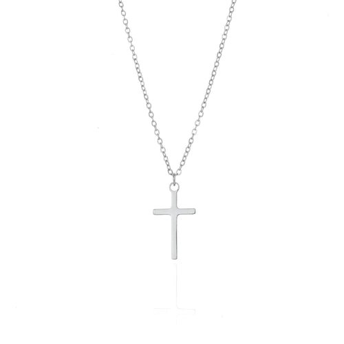 Zilveren ketting met kruisje. Deze ketting is 40 cm lang en met nog eens 5 cm langer te verstellen. De ketting is 10mm breed en 20mm lang. Gemaakt van hoogwaardig stainless steel.