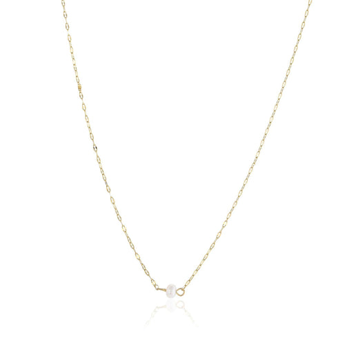 Gouden ketting met pareltje. Lengte 40cm en nog eens te verlengen met 5cm. Gemaakt van hoogwaardig stainless steel.