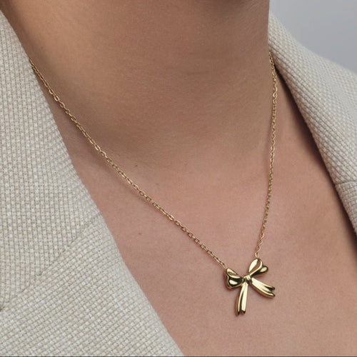 Gouden ketting met strik. Lengte 40cm en nog eens te verlengen met 5cm. Gemaakt van hoogwaardig stainless steel.