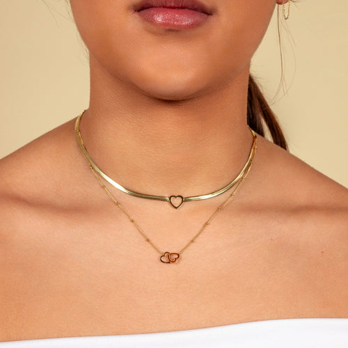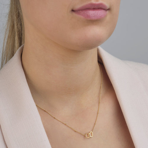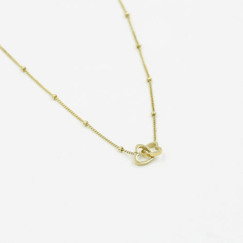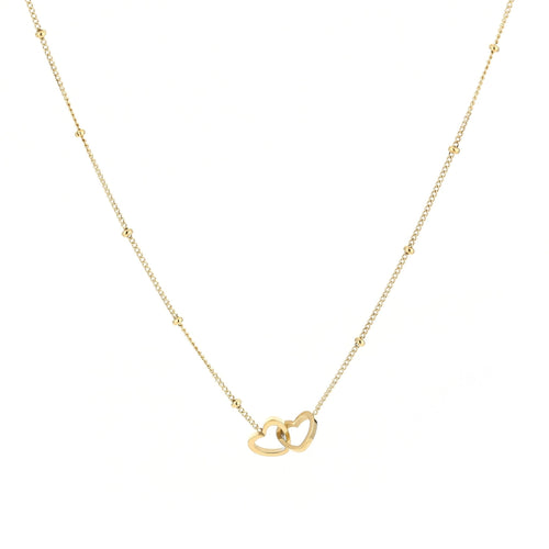 Gouden ketting met in elkaar verbonden hartjes. Lengte 40cm en nog eens te verlengen met 5cm. Gemaakt van hoogwaardig stainless steel.