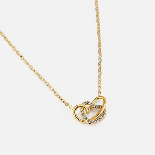 Gouden ketting verbonden hart steentjes. Lengte 40cm en nog eens te verlengen met 5cm. Gemaakt van hoogwaardig stainless steel.