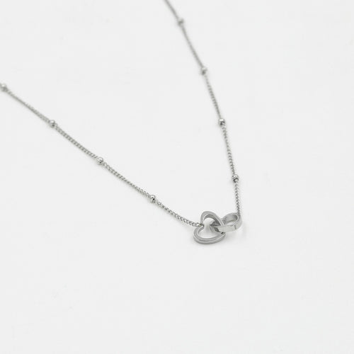 Zilveren ketting met in elkaar verbonden hartjes. Lengte 40cm en nog eens te verlengen met 5cm. Gemaakt van hoogwaardig stainless steel.