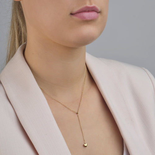 Gouden Y-vorm ketting met hartje. Lengte 40cm en nog eens te verlengen met 5cm. Gemaakt van hoogwaardig stainless steel.