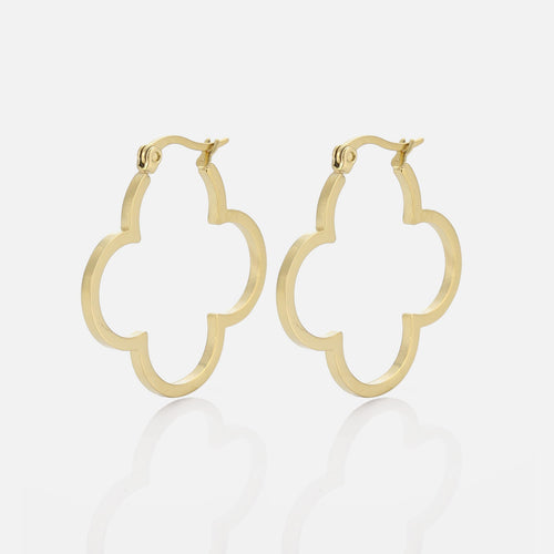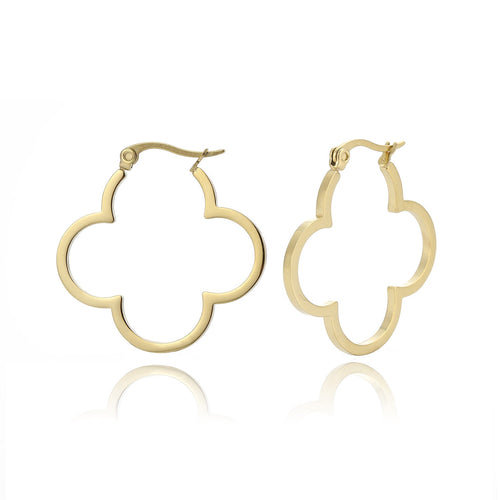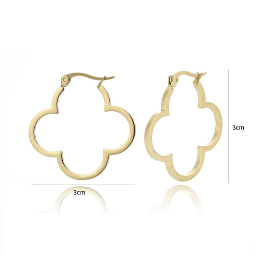 Gouden klavertjevier vorm Hoops. De oorbel is 3cm breed. Gemaakt van hoogwaardig stainless steel.