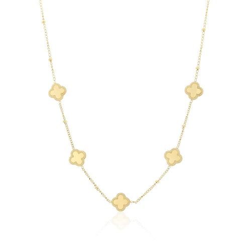 Gouden ketting met klavertjes. Lengte 40cm en nog eens te verlengen met 5cm. Gemaakt van hoogwaardig stainless steel.