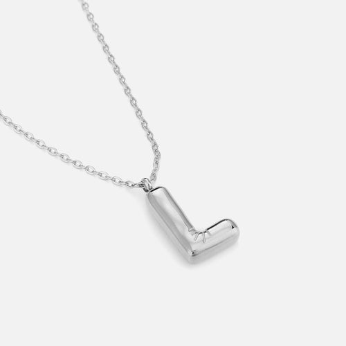 Zilveren initialen ketting. Lengte 40cm en nog eens te verlengen met 5cm. Gemaakt van hoogwaardig stainless steel. De letter is 1,75cm lang.