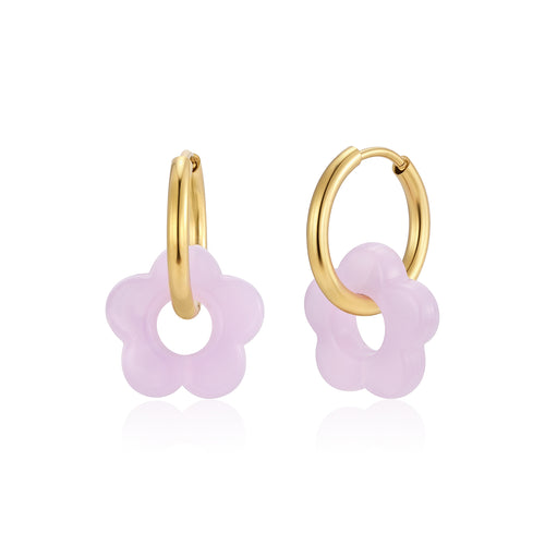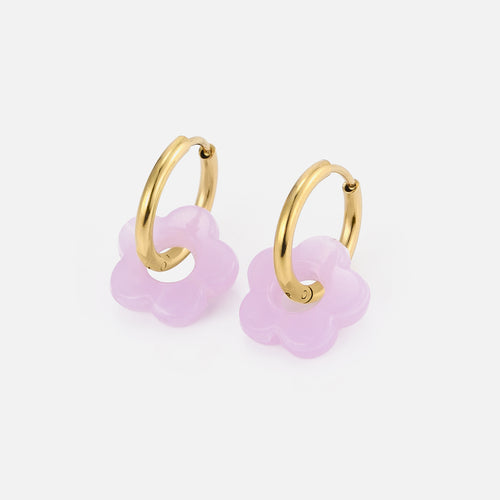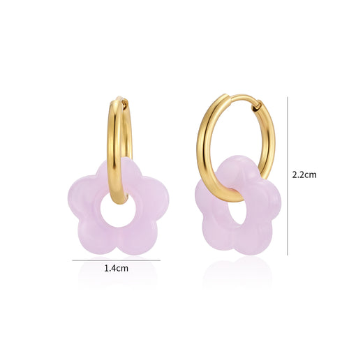De Oorbellen bloem paars goud zijn 2,2cm lang en 1,4cm breed. Gemaakt van hoogwaardig stainless steel.