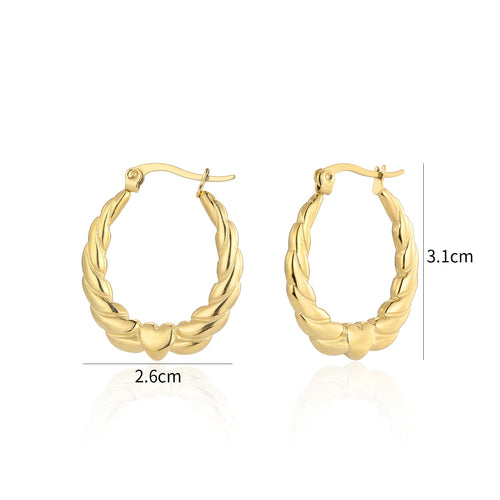 Gouden oorbellen met boog en hart. Deze oorbellen zijn 3.1cm breed. Gemaakt van Hoogwaardig Stainless Steel.