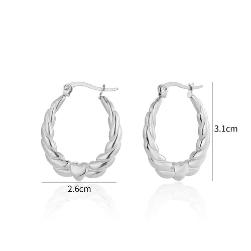 Zilveren oorbellen met boog en hart. Deze oorbellen zijn 3.1cm breed. Gemaakt van Hoogwaardig Stainless Steel.