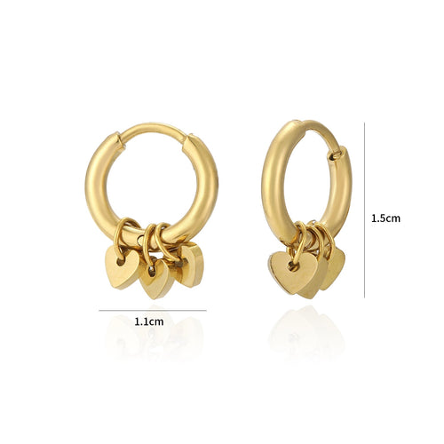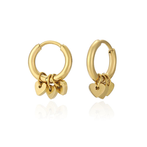 Gouden oorbellen met drie hartjes. Deze oorbellen zijn 1.5cm breed. Gemaakt van Hoogwaardig Stainless Steel.