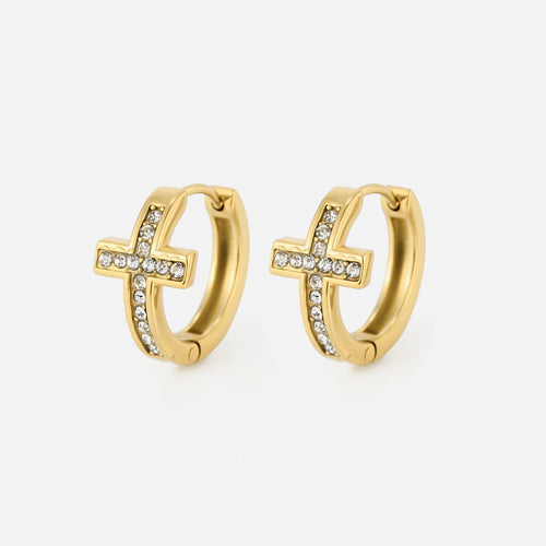 Oorbellen gebogen kruis met steentjes goud zijn 1,7cm lang en 0,8cm breed. Gemaakt van hoogwaardig stainless steel.