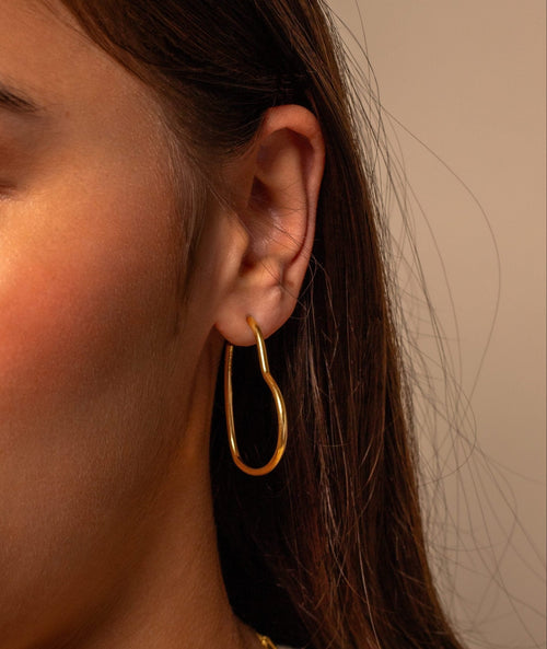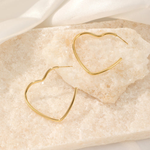 Gouden hart vorm hoops. Deze oorbellen zijn 3.5cm breed. Gemaakt van Hoogwaardig Stainless Steel.