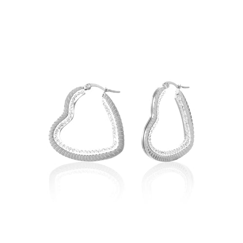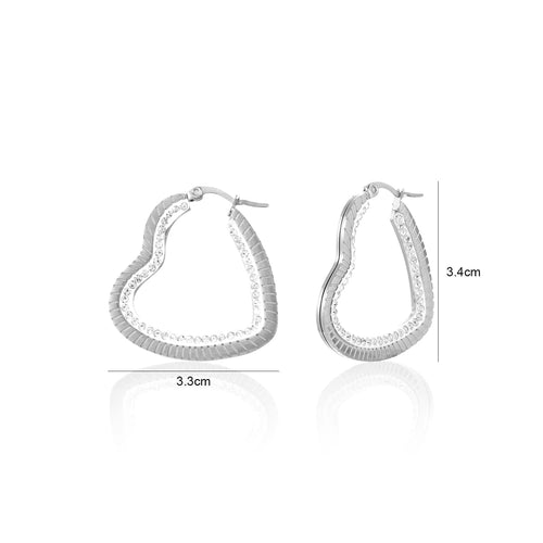 Zilveren hart vorm hoops met steentjes. Deze oorbellen zijn 3.5cm breed. Gemaakt van Hoogwaardig Stainless Steel.