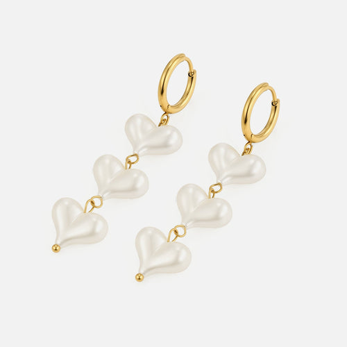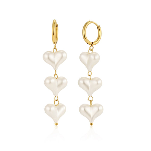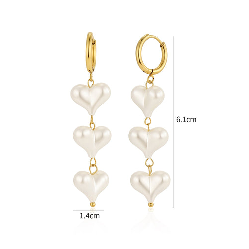 Oorbellen hangende parel hartjes goud zijn 6,1cm lang en 1,4cm breed. Gemaakt van hoogwaardig stainless steel.