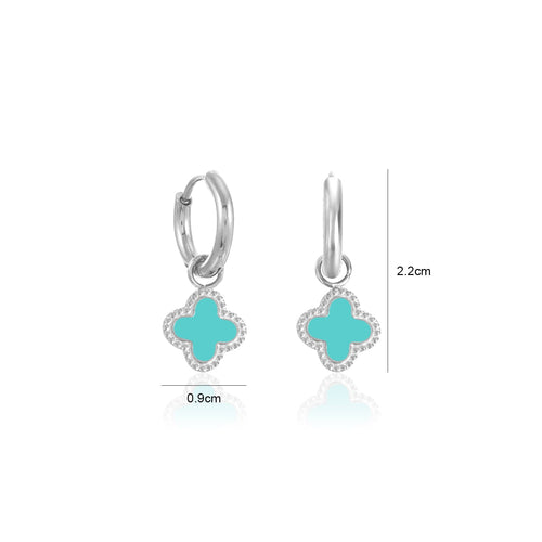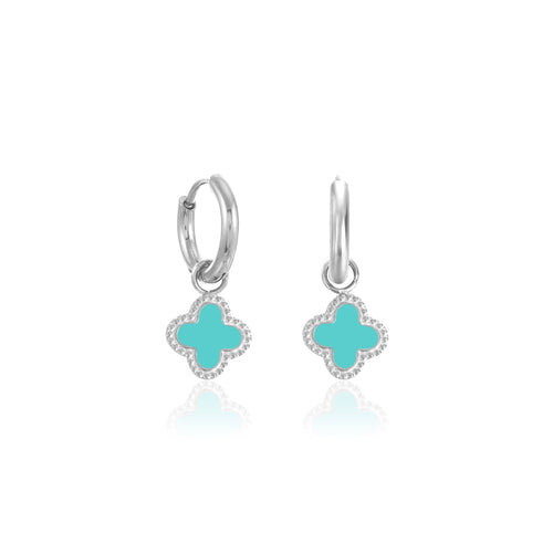 Zilveren oorbellen met mint klavertjevier. Deze oorbellen zijn 2.2cm lang. Gemaakt van Hoogwaardig Stainless Steel.